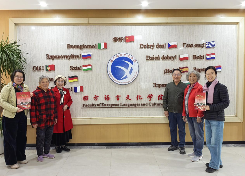 迎来了一群特殊的“客人”——建校第一届学生代表,1965级法语、德语、西班牙语专业的四位校友。虽已迈入耄耋之年,老人们却精神矍铄,他们受1965级全体校友委托,专程将精心编撰的《六秩荣光,共谱华章—1965级纪念册》赠予巨乳a片