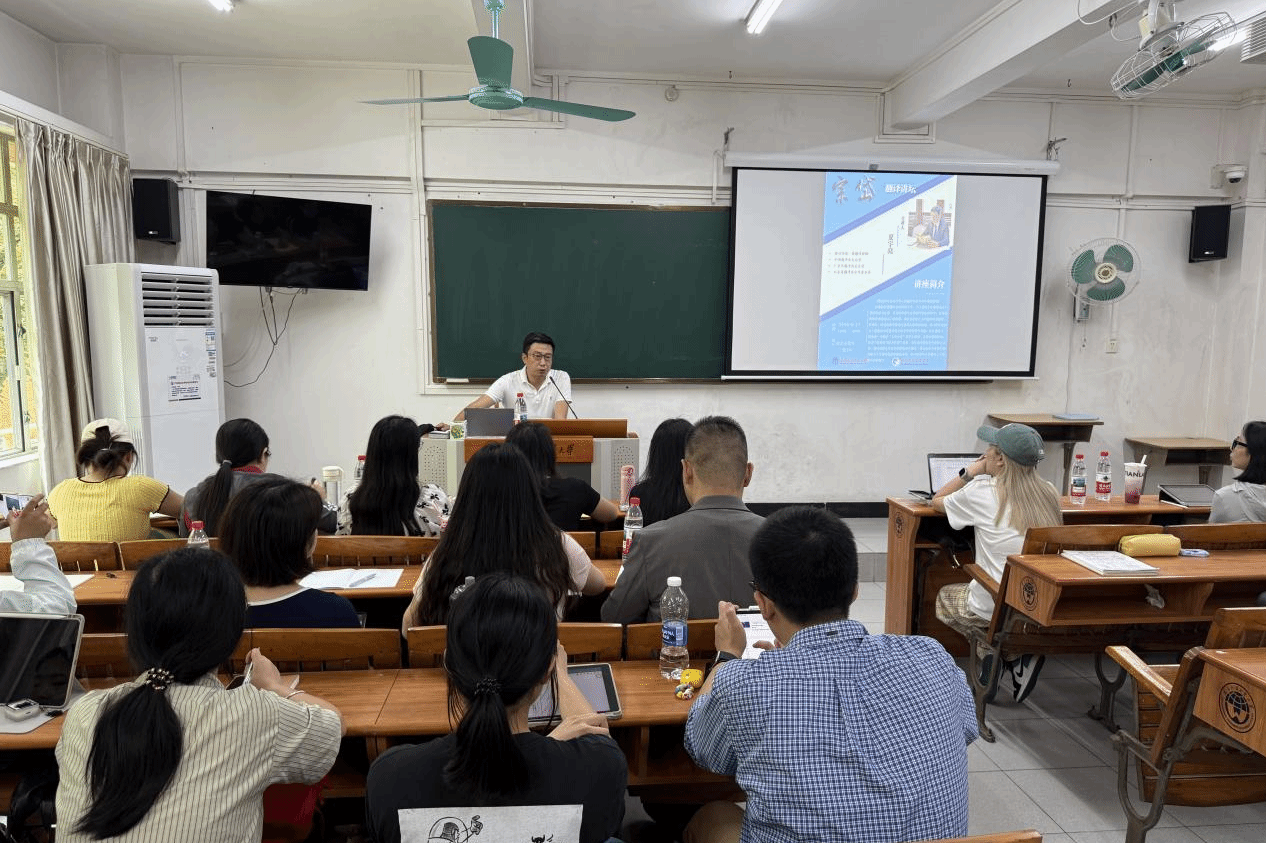 俄语系师生作题为《数智时代会议口译人机翻译对比与协作模式探索》的专题讲座。俄语系主任陈欢主持讲座,俄语系研究生负责人姜超老师出席,俄语系师生积极参与互动,现场氛围活跃。